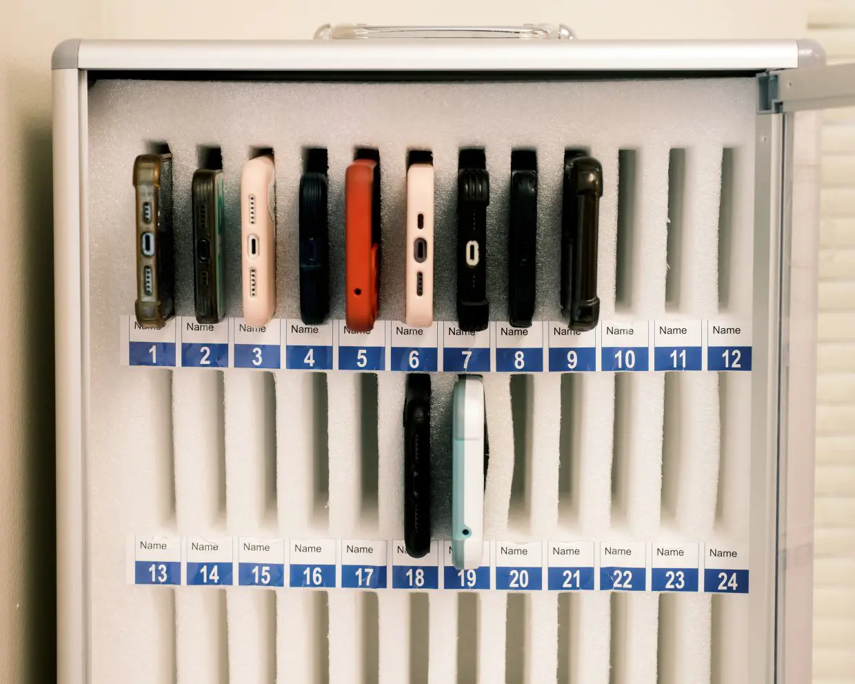 Cellphones confiscated from students are stored in a specialised phone-safe at Timber Creek High School in Orlando, Florida. As the new school year starts, a wave of new laws that aim to curb distracted learning is taking effect in Indiana, Louisiana, and other states. — The New York Times